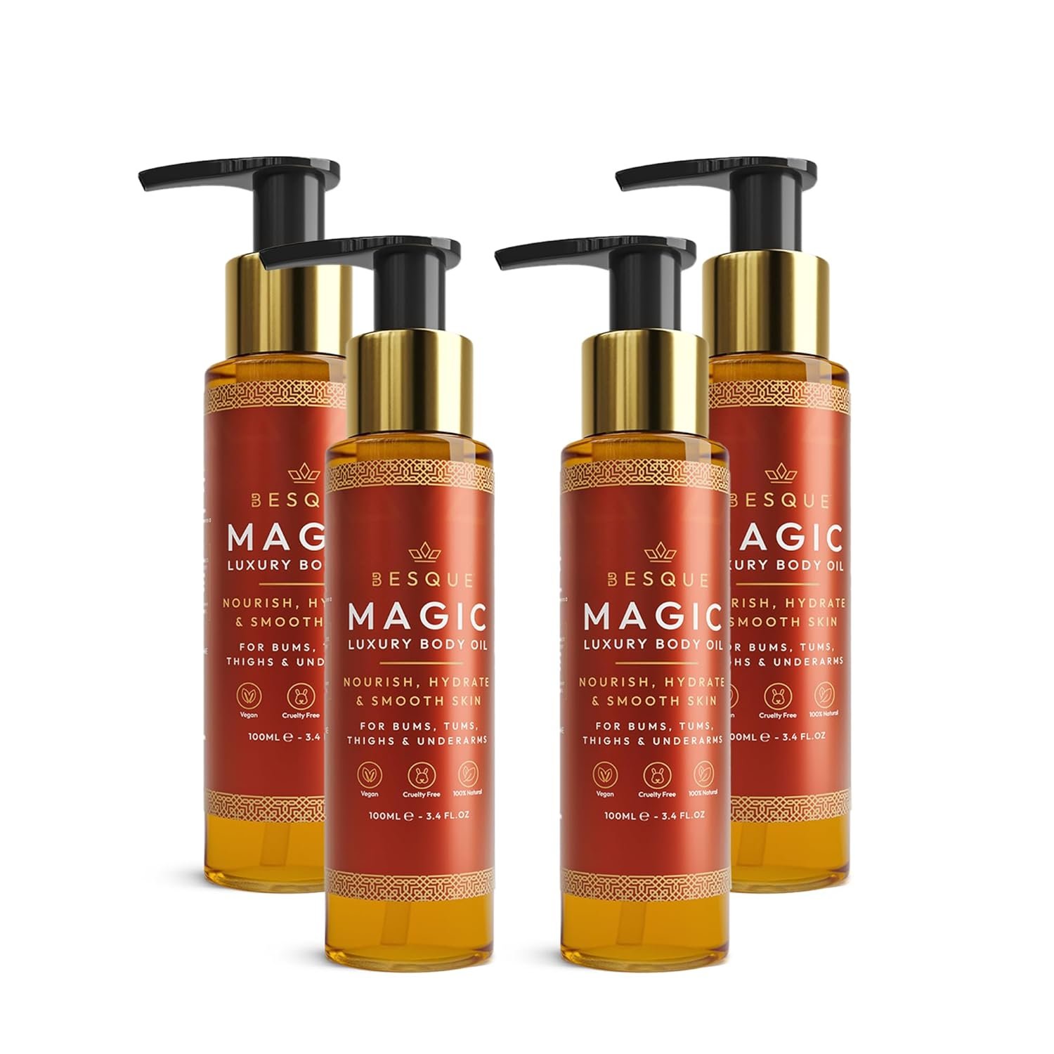 Besque Magic Body Oil, 3.4 FL OZ, After Shower Body Oil For Women, Hydrating Skin Care For Full Body That Plumps, Tightens, and Firms Skin With Natural Ingredients, Luxury Spa Gifts – Pack of 1